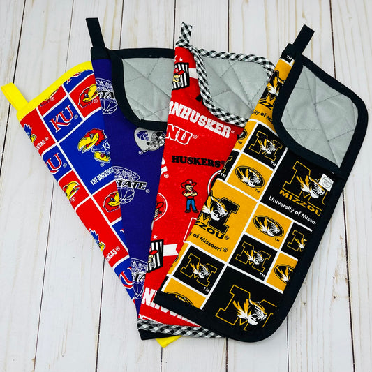 Sport your favorite college team with handmade tees, scrunchies, home decor and more. Including some of your favorite teams representing Missouri, Kansas, and Nebraska.
